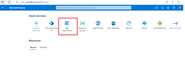 2. Go to Azure portal home page > Click App registrations.