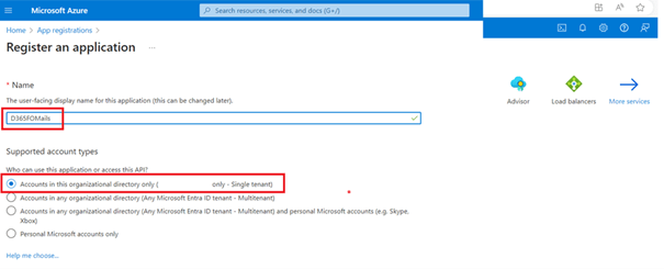 · Name – Enter the name of your app e.g. “D365FOMails”