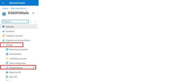 7. To add the permissions, kindly go to Manage > API permissions.