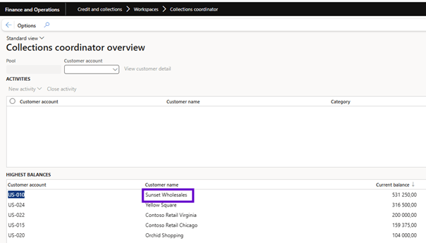 The summary of the collection coordinator provided informs about the payment status of the customer. To view this summary, you must open the Collections Coordinator workspace and then click on one of the client names presented: