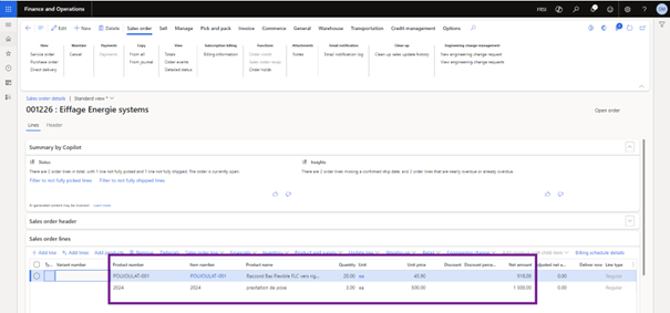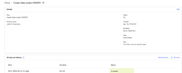 Sales Order in D365FO created successfully.