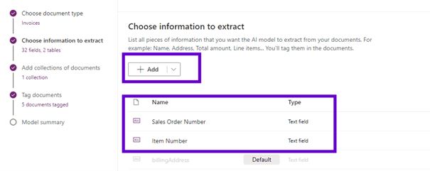 Select the AI models and choose the “Extract custom information from documents” option.