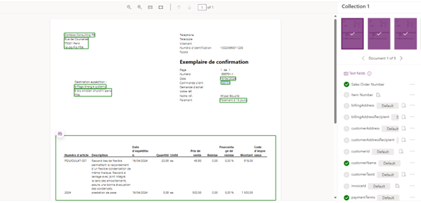 Take the sample document format that needs to be mapped in the AI Builder for each field.