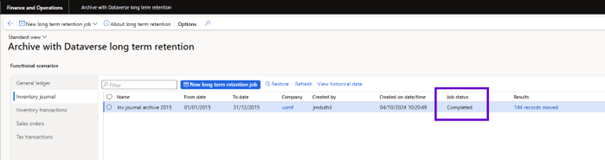 - You can schedule Finance and Operations archiving jobs from the Archive workspace for supported functional scenarios using the new Long-term Retention jobs Wizard.