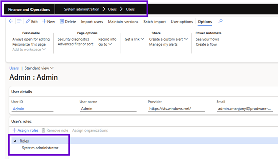 - The role of system administrator in Microsoft Dynamics 365 Finance and Operations applications.