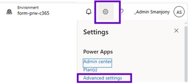 And for that, to refresh the virtual entity metadata, simply go to the maker portal, go to the setting gear. And within that setting here you will see an advanced setting. And in advanced setting there is an advanced find.