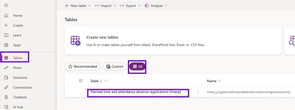 So, you need to go to the make portal, tables, search for the tables or the virtual entity that we have added.