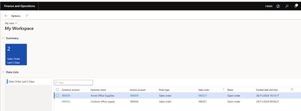For example, set the filters you are interested in on the list of customer orders. Save the current form view, go to the Options tab in the menu and use the Add to workspace button. Choose the workspace you created from the list and select the display type.