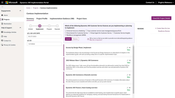 - Create your implementation project: Log in to the Dynamics 365 Implementation Portal and create your implementation project.