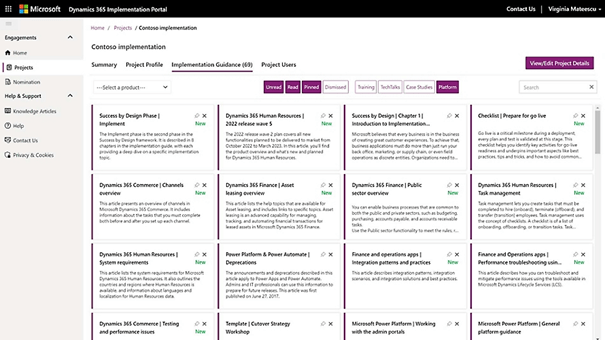 - Knowledge articles: the portal provides access to a multitude of knowledge articles that provide scenario-based recommendations. These articles are from thousands of Dynamics 365 implementation projects and provide best practices and solutions to usual challenges.