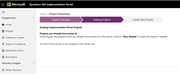 List of existing implementation projects that you are already part of. You can select View details for each project to open the project-specific information.