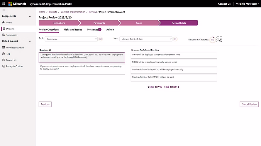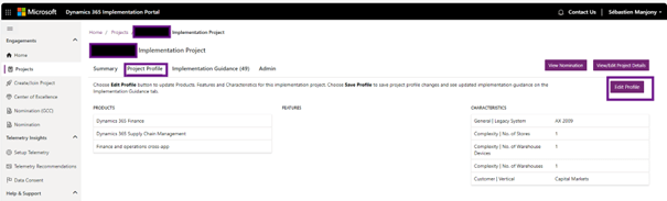 When you integrate an implementation project into the Dynamics 365 Implementation Portal, the following features can help you manage your project.
