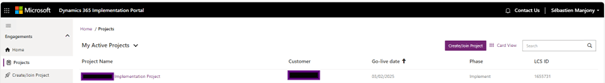 - Display and update key details such as project name, implementation partner, project phase, products involved and country or region where the implementation team is located.