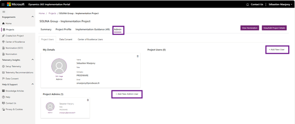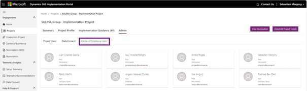 If the current user is part of the Centre of Excellence (CoE) partner team as part of the Partner Portfolio engagement. This section displays the other CoE users who are part of the project.
