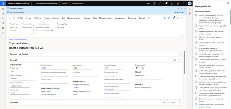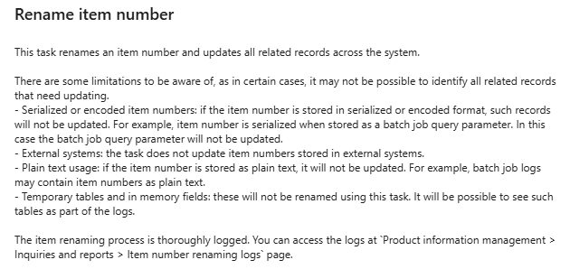 Microsoft introduced in version 10.0.42, a feature that allows you to change the article code of an already used article. This feature is called Rename item number.