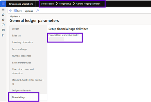 Before creating the necessary financial Tags, you must first select the delimiter to use in the general ledger settings:
