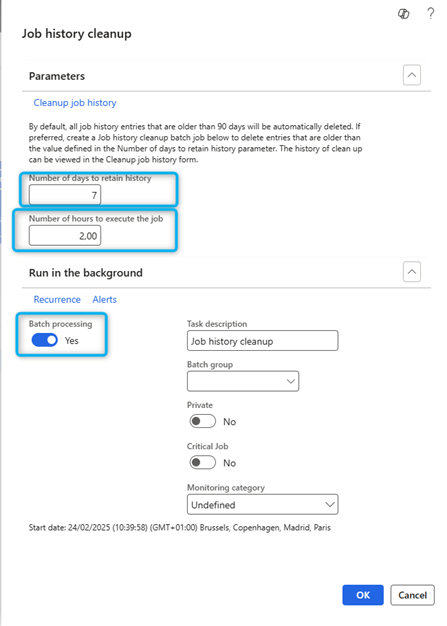 To make better use of parallelism and multithreading, you can configure the maximum number of threads per batch per instance of Application Object Server (AOS) by setting the Maximum batch threads field on the server configuration page (System administration > Setup > Server configuration). Be careful when changing the value of this field. Too high a value can have negative consequences on performance. Currently the default is 8. You can increase the value to 12 or 16. However, you should not set the field to a value greater than 16 unless you are performing important performance tests.