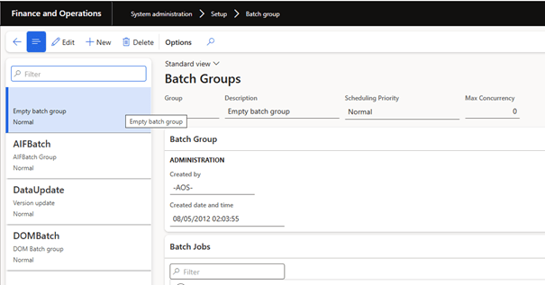 You can configure a batch group on the Batch Group page ( System Administration > Setup > Server configuration).