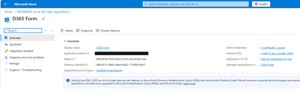 - Body: Client_Id=Cliend_Id_Value&Client_Secret=Client_Secret_Value&resource=Environment_Address