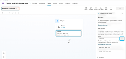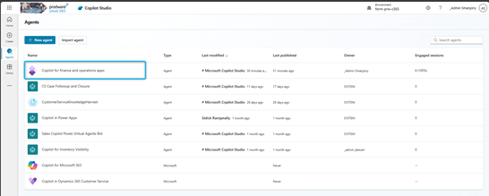 Let us go to Copilot Studio and add topics to the agent: Copilot for finance and operations apps.