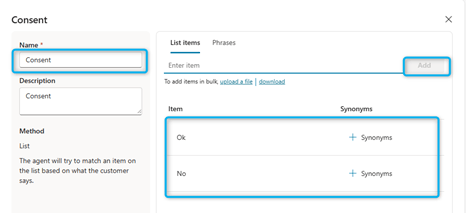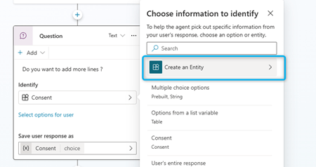Where Consent is a custom entity which I have created previously for obtaining the user input: