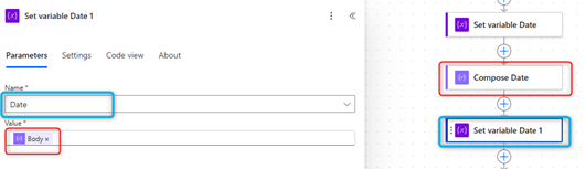 “RequestedShippingDate”: “@{variables(‘Date’)}”,