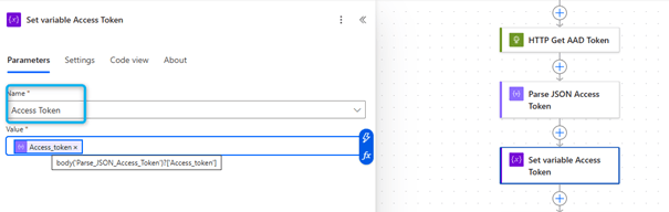 Next, we are calling a HTTP post to call the AAD token. You need to create an app registration in Azure Portal with Client Secret: