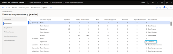 User security governance also involves an unknown license concept. The license level is based on both menu items and privileges used in a security role. In an internal table, there is a list of almost all privileges with a linked license SKU. For some duty and privilege, he knows nothing about license SKUs. As a fallback, it uses information from individual menu items where legacy license requirements are set on properties for a Maintain and View user license. To get the best recommendations on this form, I suggest using standard duties and privileges as much as possible when creating security roles.