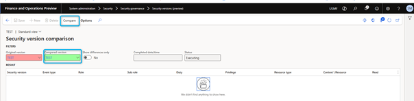 Once security versions are created, users can compare them to better understand the differences between them.