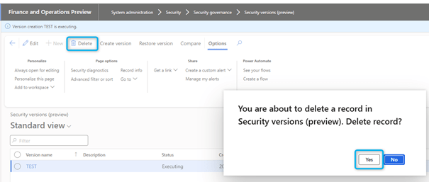 Users can delete security versions that are not required.
