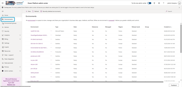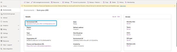 - Choose the environment related to your Dynamics 365 Finance instance.