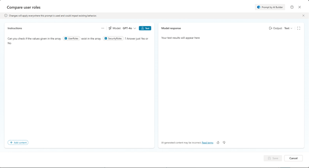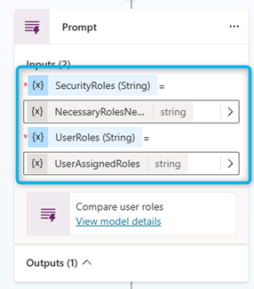 UserRoles” and “SystemRoles” are two variables defined in the prompt. It looks like this: