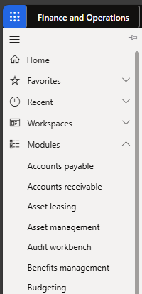 Looking at the module structure in D365 Finance, you can see this integration of business processes into various modules supporting processes in finance, supply chain, production, projects and more: