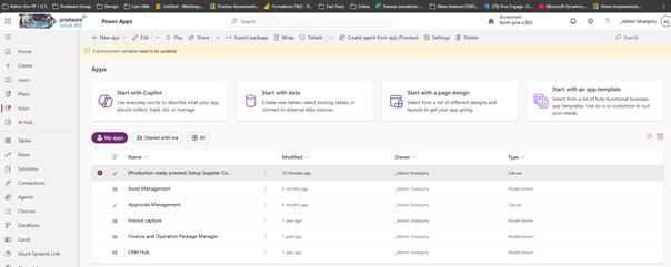 - Sign in to Power Apps as an environment administrator user.
