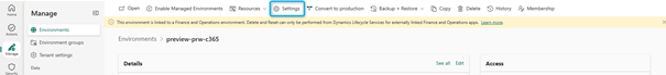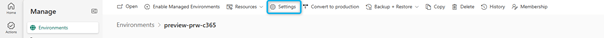 - Return to the Settings page for your environment.