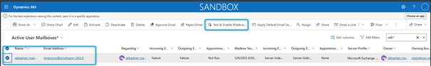 - On the command bar, select Test & Enable Mailboxes.