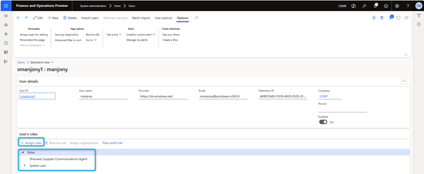 All Dynamics 365 Supply Chain Management users working with the agent must also be created as Dataverse users (if they are not already).