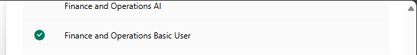- In the Manage Security Roles Dialog, select Finance and Operations Basic User and Basic User, and then select Save.