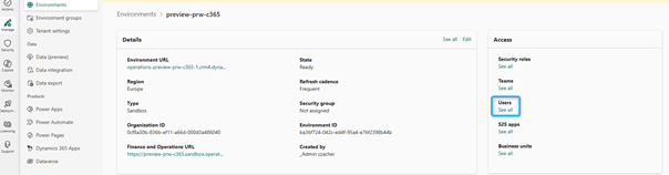 In PPAC > Environments and select the environment used, click on Users.