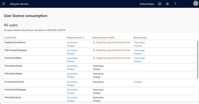 - Review the mapping of user roles and licenses: use the Power Platform Admin Center or Dynamics Lifecycle Services reports to generate a high-level summary of active users and respective license requirements.