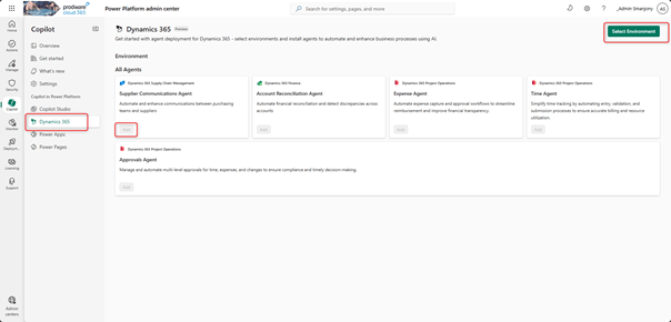 To run the Agent Deployment Wizard, navigate to the Power Platform Admin center (currently available only in the preview portal Power Platform admin center):