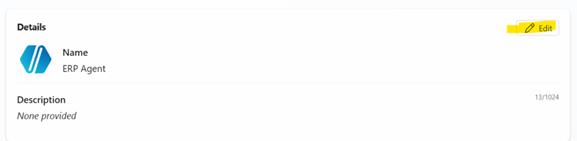 - Clearly define the agent’s purpose (for example, “Assist with ERP queries and inventory checks”).