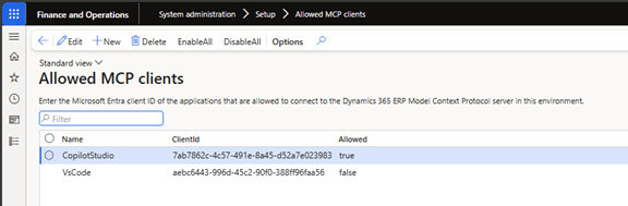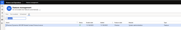 - Enable: (Preview) Dynamics 365 ERP Model Context Protocol Server