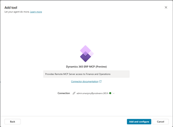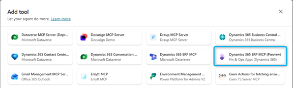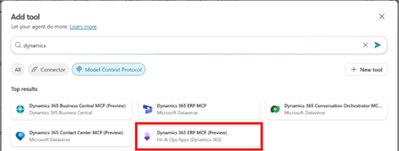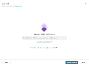 - Add the Dynamics 365 ERP MCP (Preview) tool