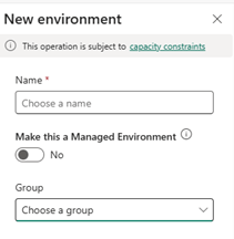 The Security Group field is critical for access management. It controls environment visibility based on group membership and assigned environment administrators.