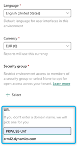 You may also define the Domain Name. If not specified, the environment URL will be auto-generated (for example: orgXXXXXXXXX). This URL will also be used for the Dynamics 365 Finance environment.