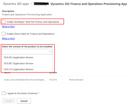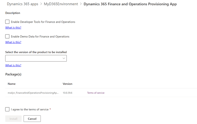 - Select Dynamics 365 Finance and Operations Provisioning App.