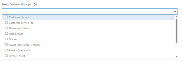 | AppsTemplate | Supported apps: Customer Service, Field Service, Project Service Automation, Sales |