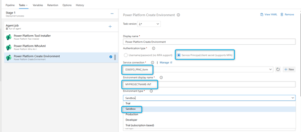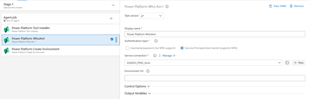| PowerPlatformEnvironment | Environment service URL defined in Service Connections |