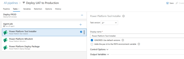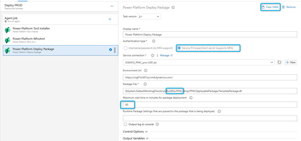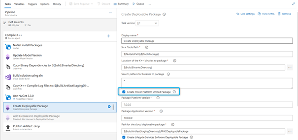 For the build pipeline, configure it to generate a UDP (Unified Deployable Package) for Power Platform.